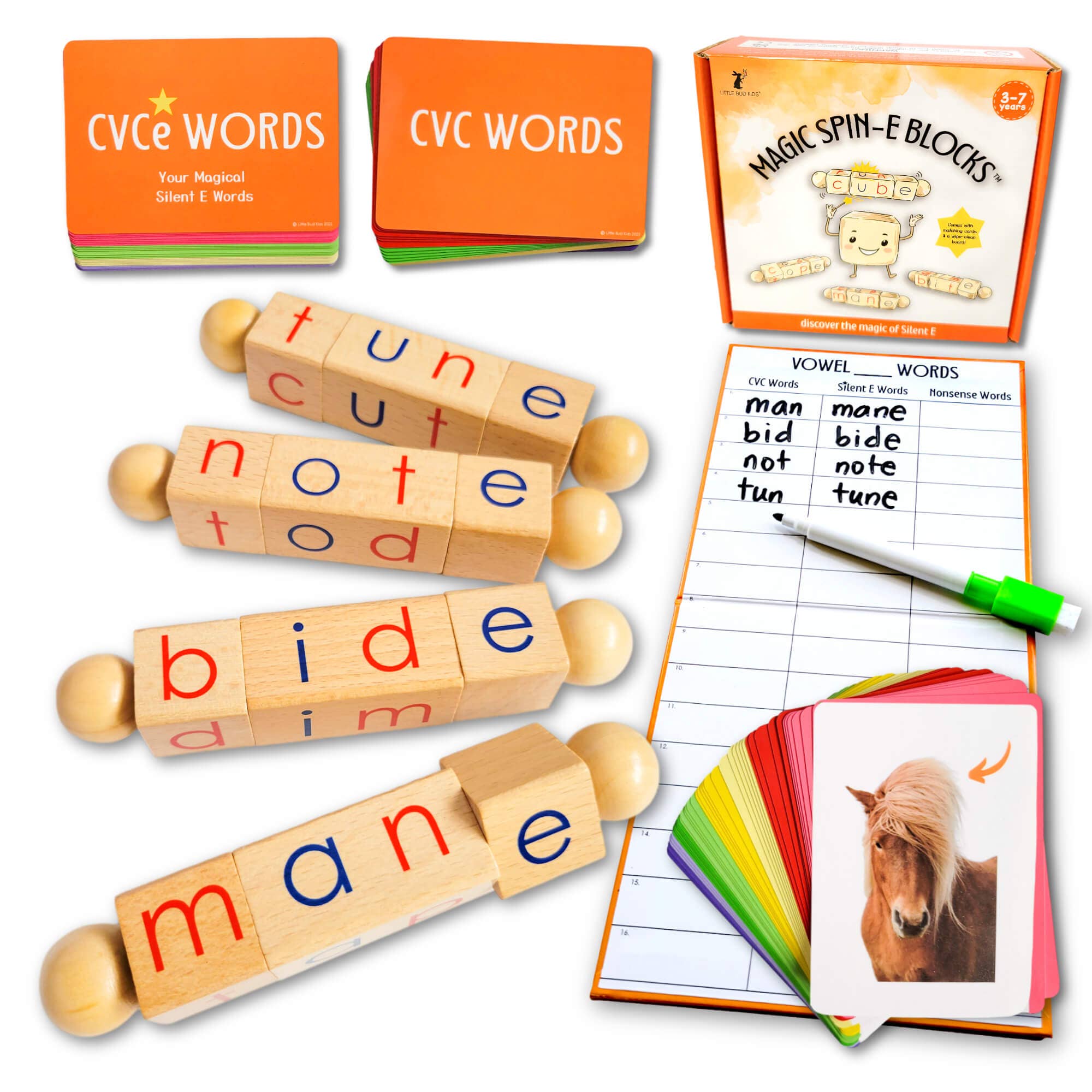 Magic Spin-E Blocks - Silent E CVCe Word Builder Phonics Toy