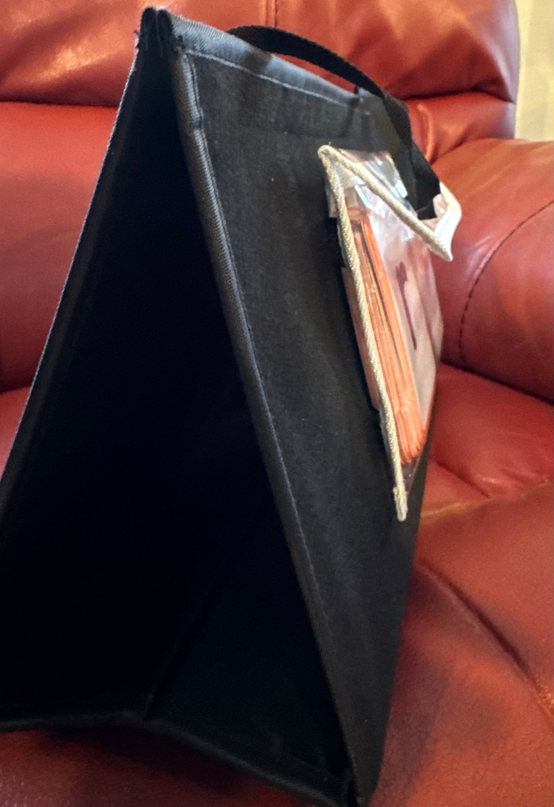 This tabletop pocket chart stands upright on a desk and is portable with a carrying handle. This kit includes 46 photos and the letters to spell the words.