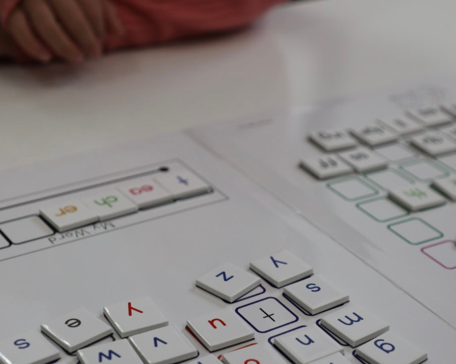 July 2025 folder version has larger font as shown in photo of single-letter grapheme tiles.
