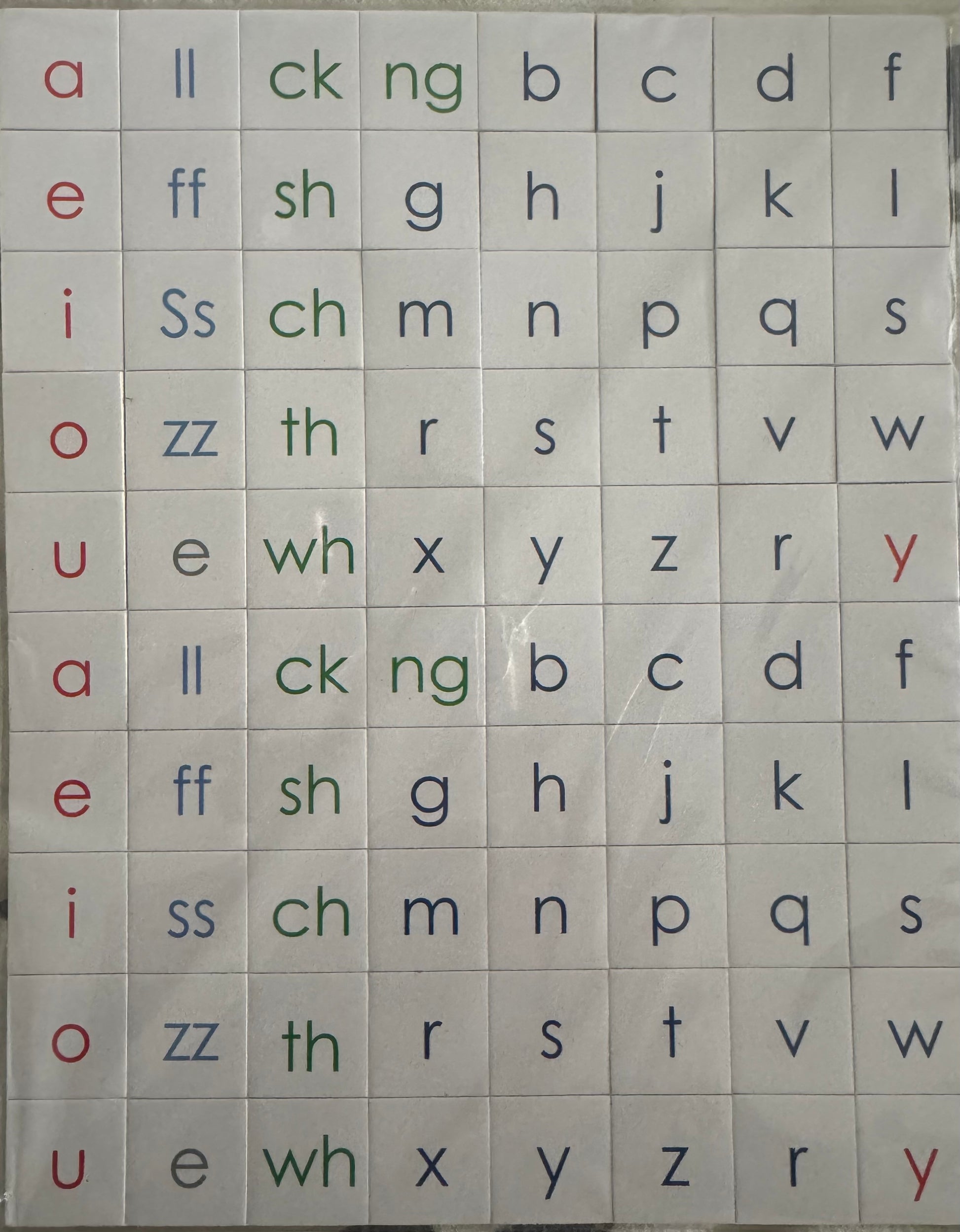 There are no “ph” grapheme tiles in either set, but instead an extra “r”. This was not intentional.